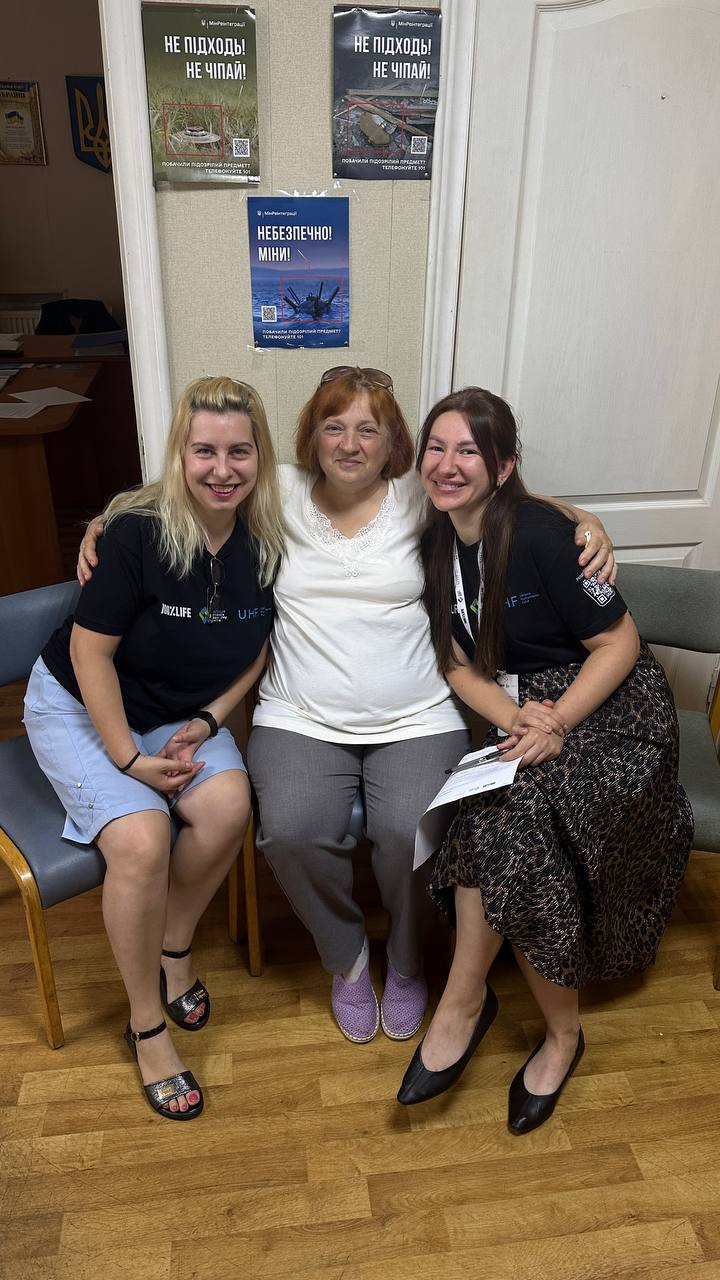 На фото — жінка, яка отримала підтримку, та психологині мобільної бригади.